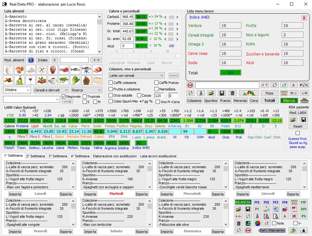 Qualsiasi modo si utilizzi per eleborare una dieta, un potente ed esclusivo algoritmo la bilancerà automaticamente in base alle calorie e macronutrienti impostati ed ai LARN relativi del paziente (vedi tutorial).
